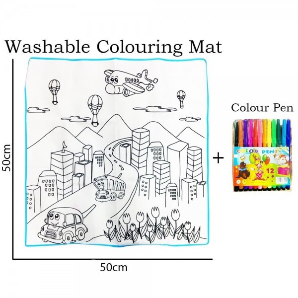 • Package includes 1 kid drawing colouring mat and 1 set of colour pens