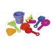 This beach toys set comprises a variety of vibrantly coloured tools that inspires imaginative play. A bright purple bucket allows your little one to carry sand or water from one side to the other. Use the green rake and blue spade to dig out a hole or smoothen out an area to build your sandcastle. Brightly coloured shifters can be used to shape and design the sandcastle and help set the sand without it falling. Finally the yellow and red moulds can be used to create attractive patterns and designs on the sandcastle.