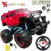 Dominate any type of terrain with the all new off road 1:8 electric Hummer monster car. Featuring a full function Gravity Sensor transmitter, this awesome monster car allows you to control every single move it makes with ease. The body is extremely durable while the huge front and rear bumpers make this RC extremely rugged. It comes with a rechargeable battery for the truck. You can operate the car at the distance of 20 meters and above. Its with cool LED Lights, Big Tyre's, Powerful Motor & Improved Suspension. Built to last all-weather fun racing truck with 4 Wheel Drive. high strength shocks, over-sized tires, wheel alignment control and highly detailed design. Dimension: L-38cm,W-30cm and H-32cm
