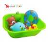 Smart picks baby bath squeeze toy with bathtub is a cool bath toy for kids! If you squeeze it makes sound floats in bath tub without leaking! Let your baby enjoy while bathing with this toys In package you will get 5 animal, 1 water teether and 1 tub.