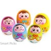 Nothing excites babies more than this cute looking Tumbler Doll. It is a classic, all-time favorite baby toy that can do wonders for your baby. It wobbles and makes soft and sweet sounds, which attracts and makes them to try and touch it. It never falls... thanks to its awesome balancing power and comes to its original standing position after some time. Always smiling and nodding its head, it can soothe a crying baby and calms them. Give any name to this toy, it never fails to bring fun and joy to your little child. It improves a baby's hearing, touch and grasping abilities and is completely safe for your infant baby. Product Features:- This Tumbler Doll Wobbles, Nods It's Head and Never Falls When Pushed Gently. Returns to Its Original Standing Position after Some Time. It Makes Soft and Sweet Sounds, Making the Baby Curious and Happy at the Same Time. Soothes a Crying Baby and Pacifies Them. Lures and Excites the Baby to Touch and Grab It. Improves Their Hearing, Motor Skills and Touch Abilities. Cute to Look at and Made of High Quality Plastic, It is a Classic All-Time Favorite Baby Toy. Package contains Any One Tumbler Doll. Available in Multiple Random Colors and Designs.