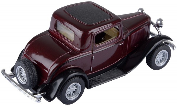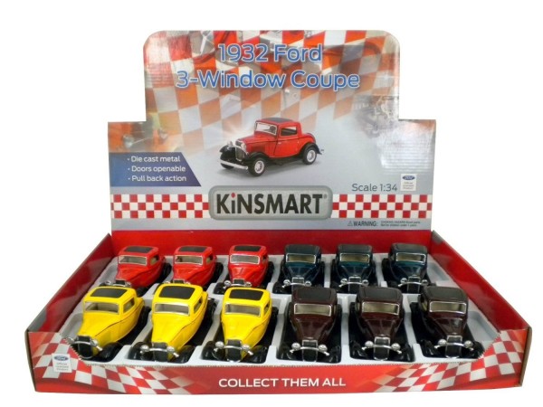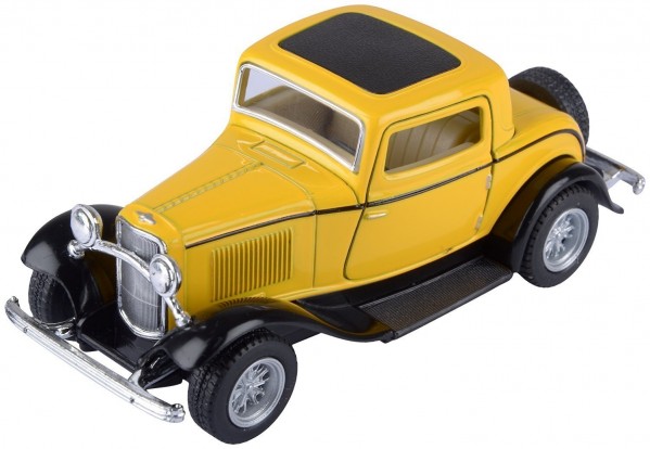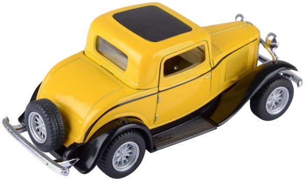 Die Cast 1932 Ford 3-Window Coupe Car with Openable Doors & Pull Back Action, Yellow (5-inches)