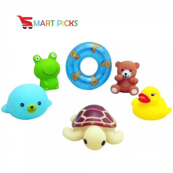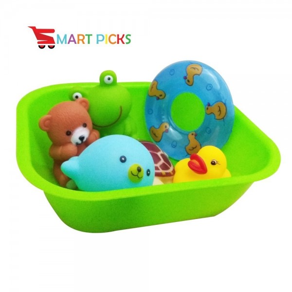 Smart Picks 6pcs Squeeze Bath Toy with Plastic Bathtub for Toddler Baby