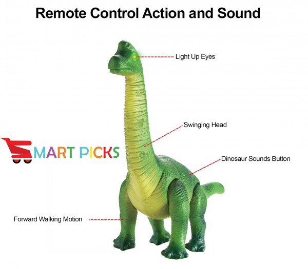 - Remote control walking dinosaur for your kids Realistic roaring sound, - Light- up eyes Real walking action