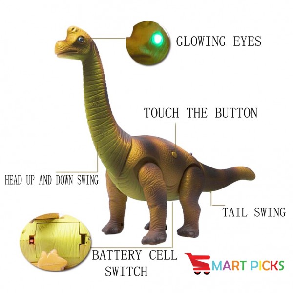 - The head can swing up and down, accompanied by a beautiful light. Will issue a dinosaur roar