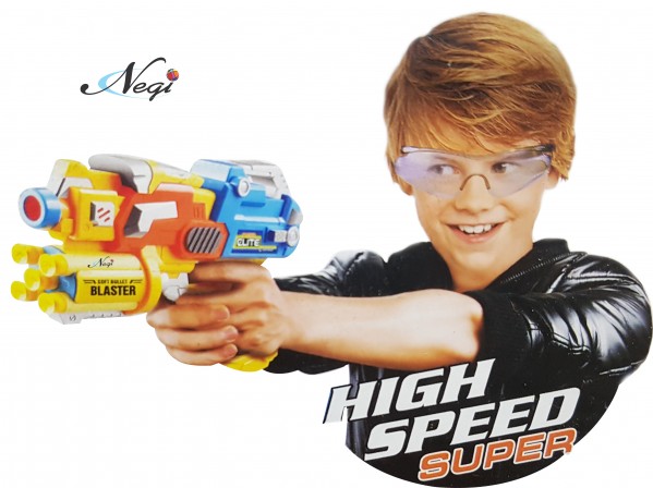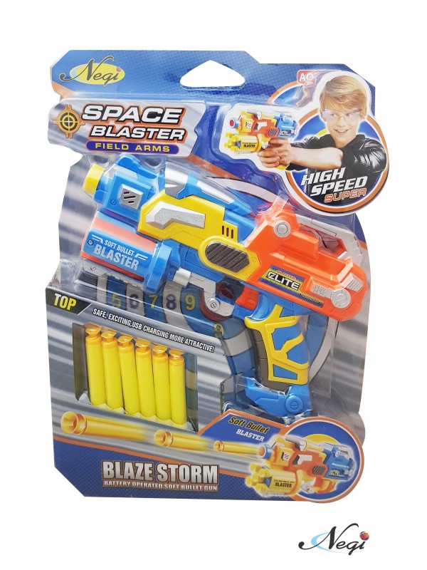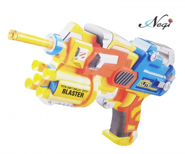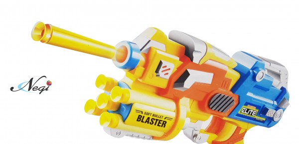 - Have a great shooting dart game with this Negi Blaze Storm Manual Soft Bullet Gun. Kids will love to fire soft foam bullets and suction darts and hit an imaginary target. Or you can make a target board yourself and sharpen your shooting skills. This Gun is easy to operate - load the soft bullets or suction darts from the front muzzle, pull the lever at the back, trigger and fire. The Magazine can load 4 foam bullets at one time to make the action look all the more real.